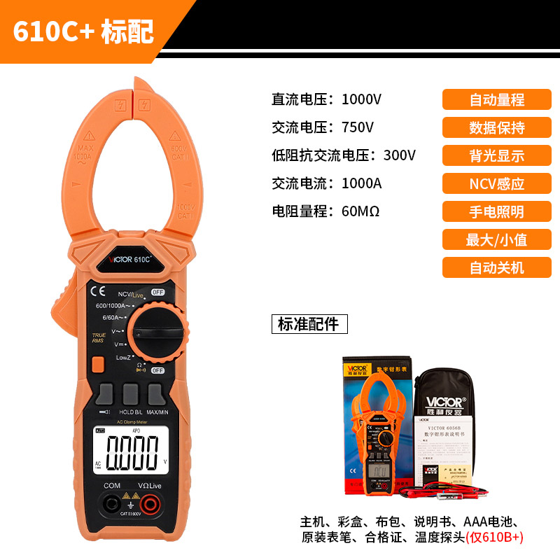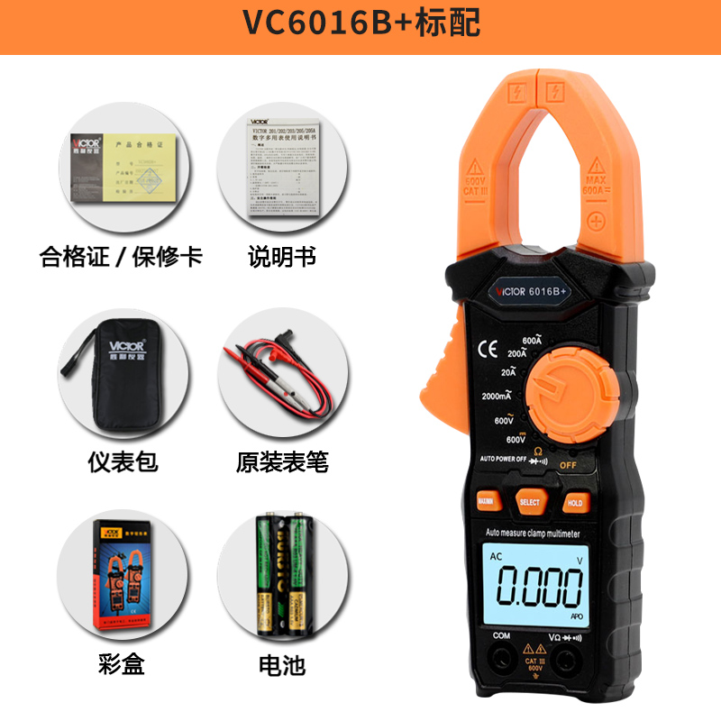 VICTOR 6016B+是6000宇顯示自動(dòng)量程真有效值手持式鉗型數(shù)字儀表,整機(jī)...
