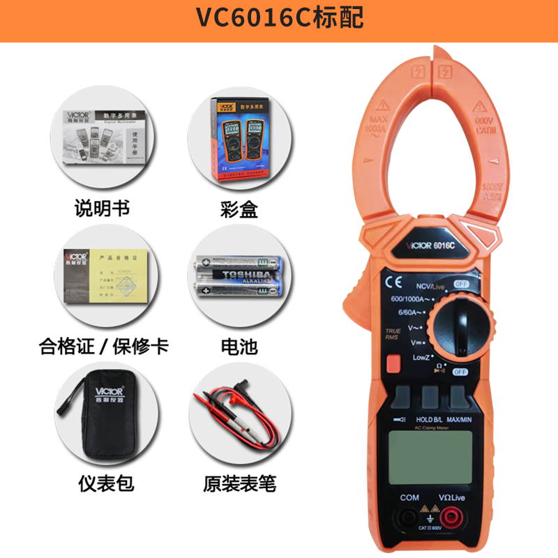 VICTOR 6016C+是6000宇顯示自動(dòng)量程真有效值手持式鉗型數(shù)字儀表,整機(jī)...