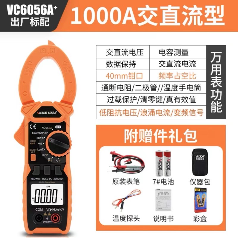 VICTOR 6056A+是6000宇顯示自動(dòng)量程真有效值手持式鉗型數(shù)字儀表,整機(jī)...