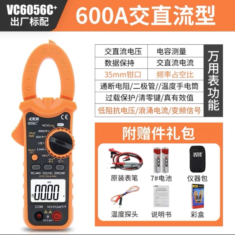 VICTOR 6056C+是6000宇顯示自動(dòng)量程真有效值手持式鉗型數(shù)字儀表,整機(jī)...