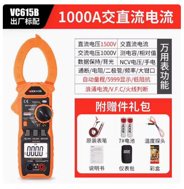 VICTOR615B是一臺(tái)6000計(jì)數(shù)手持式自動(dòng)量程真有效值的鉗形數(shù)字儀表。整...