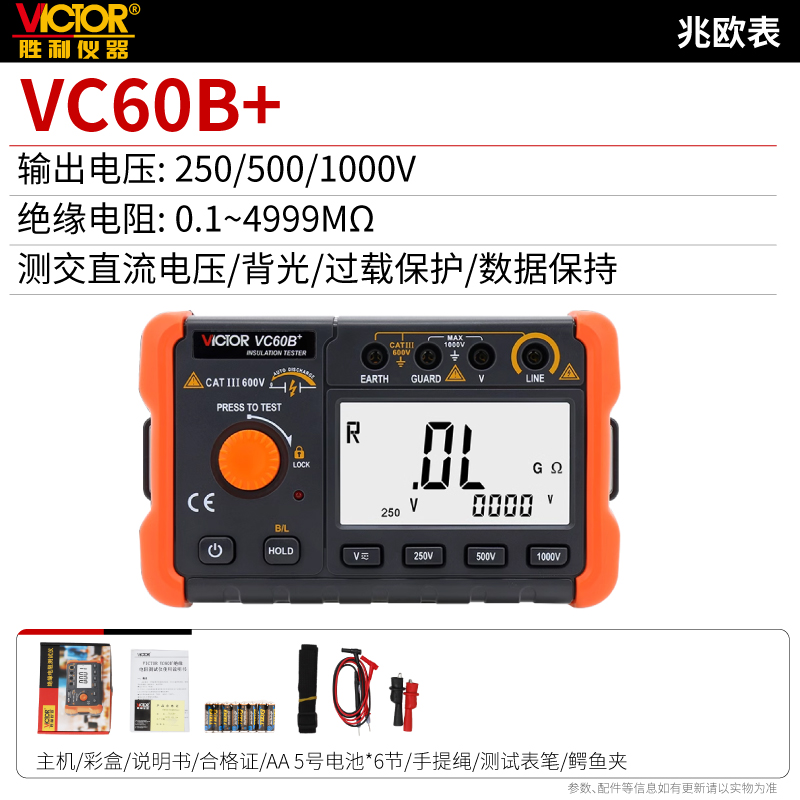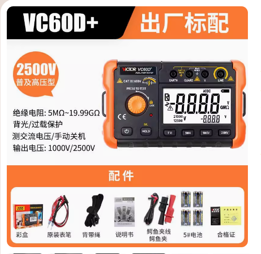VICTOR 60B+是-臺智能微型絕緣測試儀,可以完成絕緣電阻、電壓等參數(shù)...