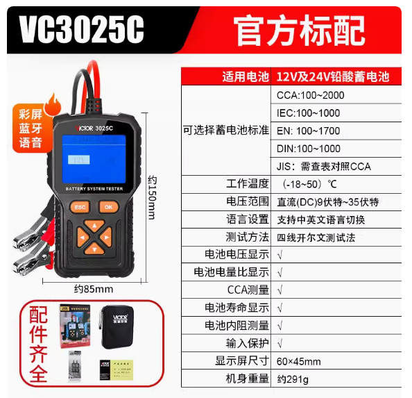 VICTOR 3025B 智能蓄電池檢測儀適用于12伏特及24伏特鉛酸蓄電池性能...