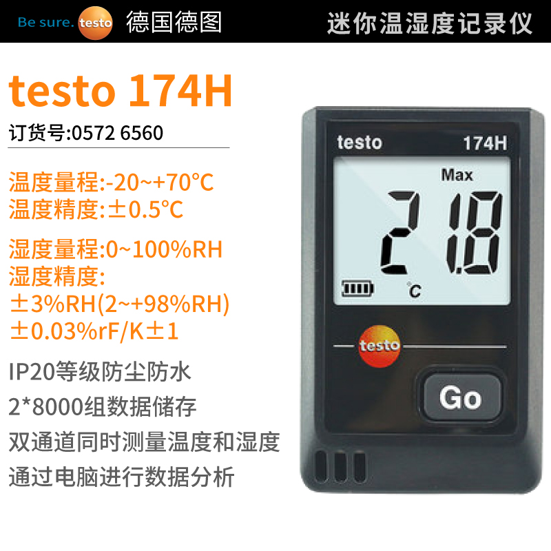 testo 174 H數(shù)據(jù)記錄儀內(nèi)置長(zhǎng)壽命傳感器用于測(cè)量周邊環(huán)境中的溫度和濕度,...
