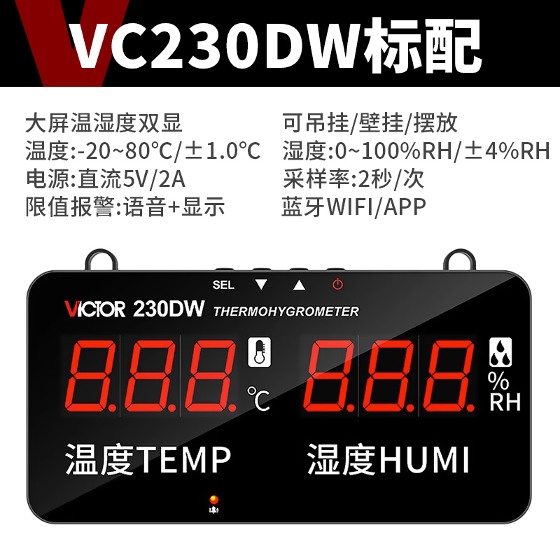 VICTOR 230S是一款可以實(shí)時(shí)監(jiān)測(cè)室內(nèi)空氣溫濕度的數(shù)字溫濕度計(jì),其采...