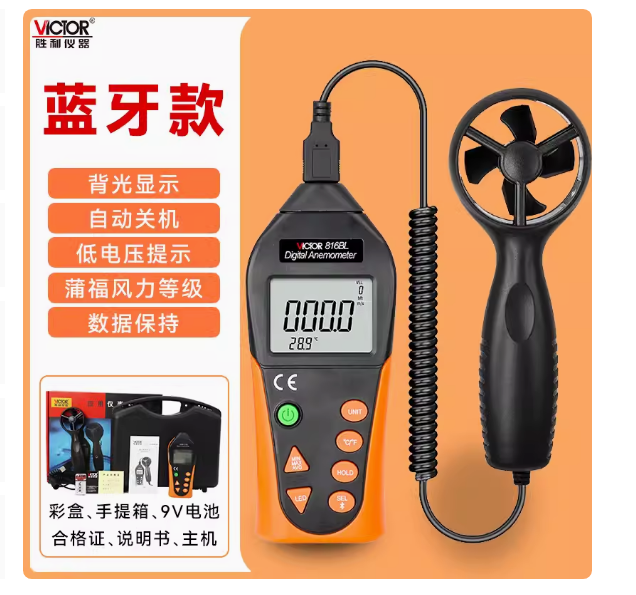 VICTOR816BL風(fēng)速計(jì)一款性能穩(wěn)定,可靠,外觀新穎可同時(shí)進(jìn)行風(fēng)速風(fēng)溫...