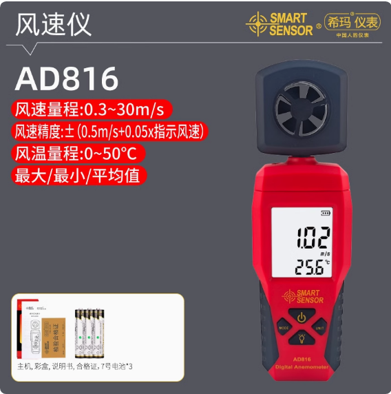 一體式風(fēng)速儀,0.3~30.0m/s,最大風(fēng)速/最小風(fēng)速/平均風(fēng)速測(cè)量,3*1.5V電源...