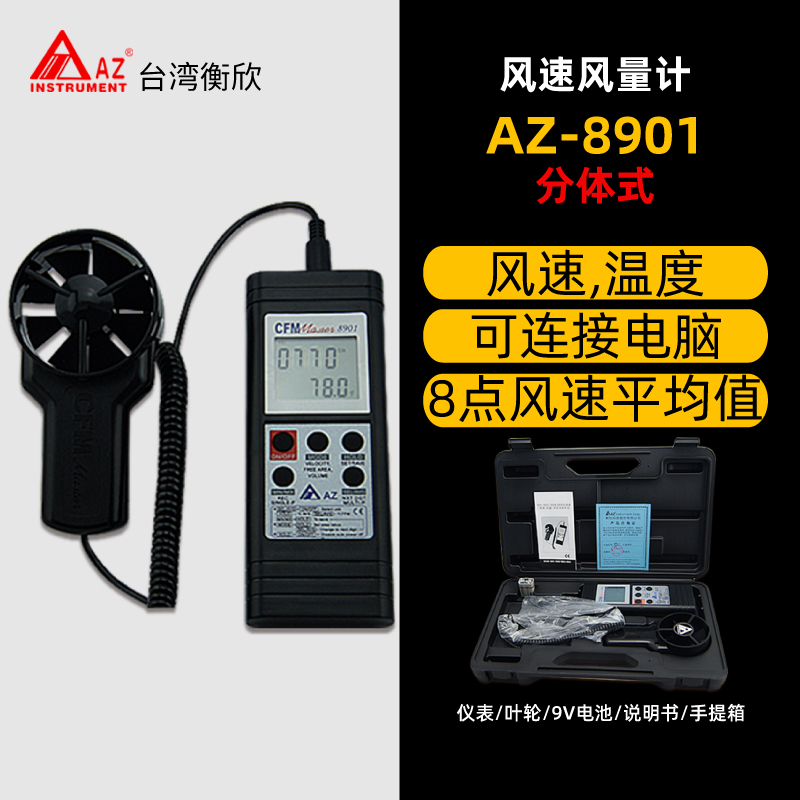 在通風管道中進行測量,使用熱線風速探頭測量流速、風量、空氣溫度和濕度。...