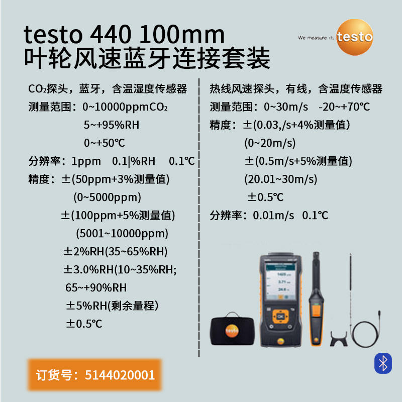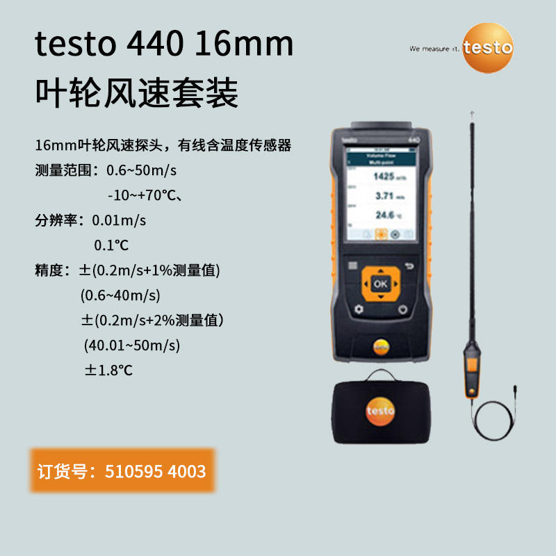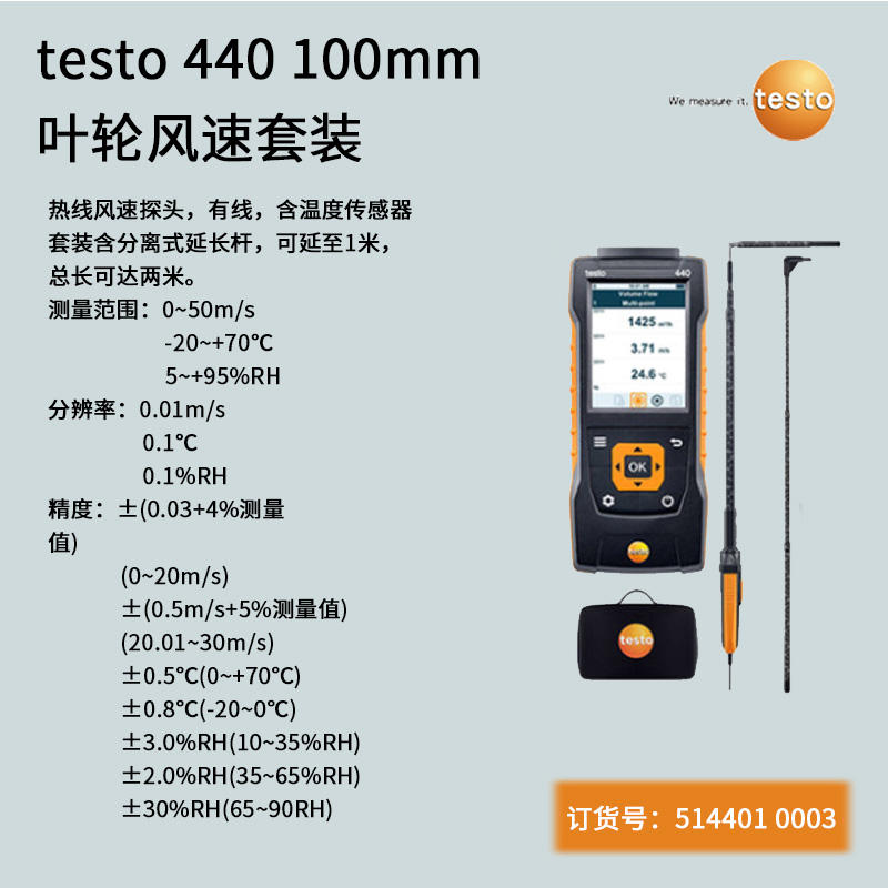 用于在通風管道中進行測量的testo 440 標準有線連接熱線風速套裝(直徑?9 m...