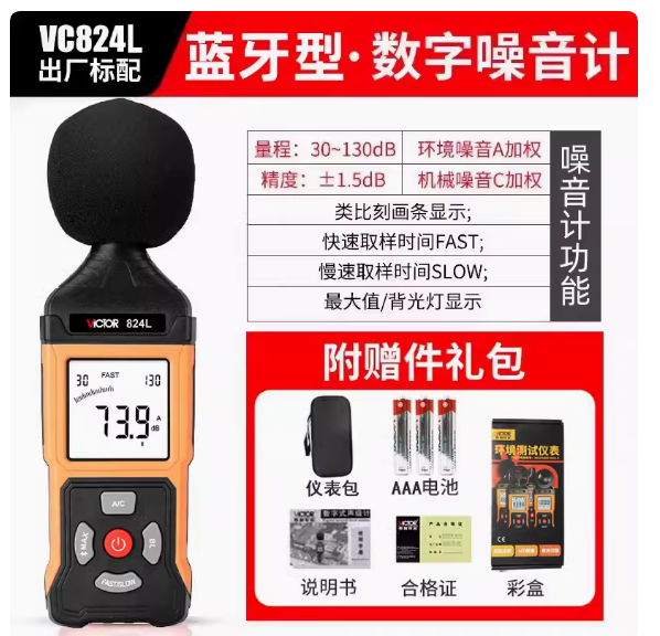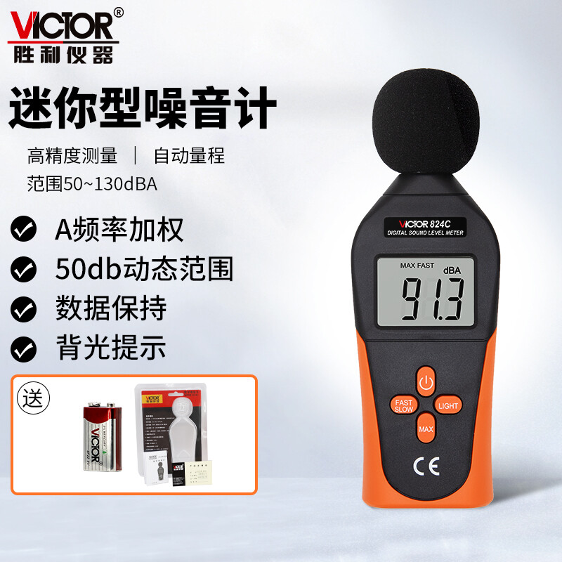 VICTOR824型數(shù)字式噪音計用于做噪音工程,品質(zhì)控制,健康防治及各種環(huán)...