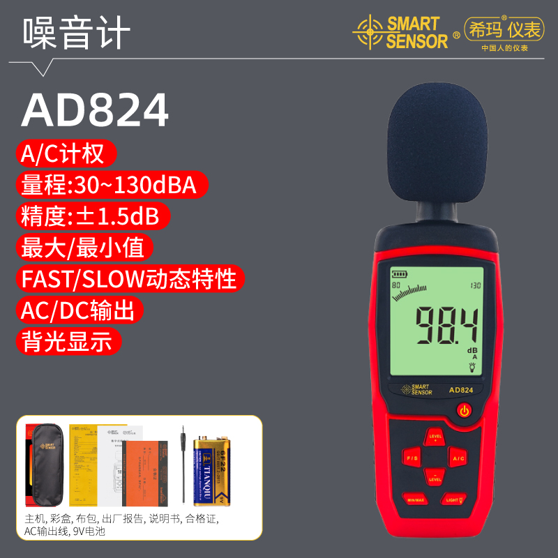AD824【量程30~130dBA/精度±1.5dB/AC計權(quán)】