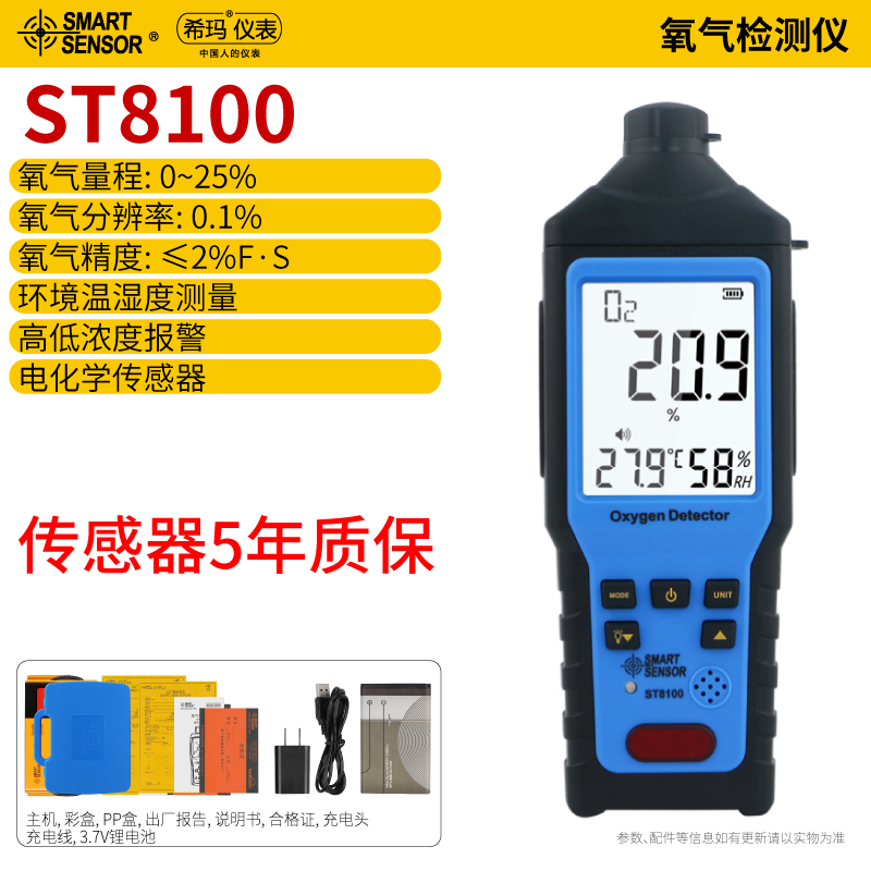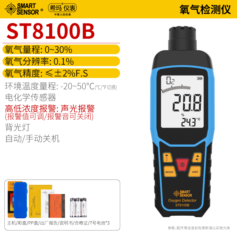 希瑪ST8100氧氣檢測儀手持式氧氣O2濃度含量氣體報警器測氧儀...