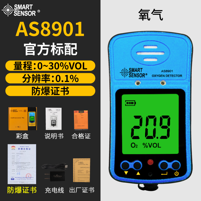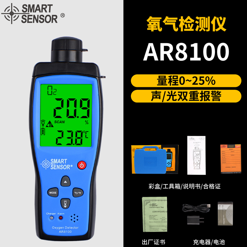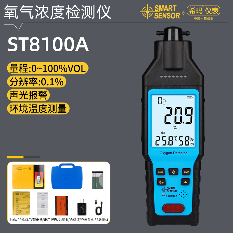 ?,擲T8100氧氣檢測儀手持式氧氣O2濃度含量氣體報警器測氧儀...