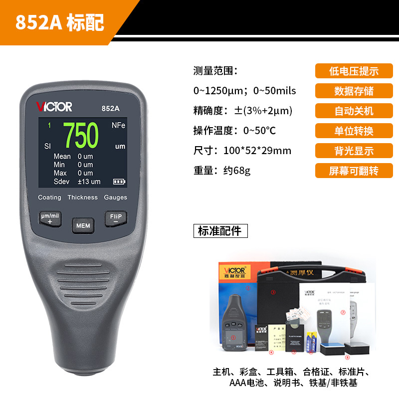 VICTOR852A 操作方式:手動量程產(chǎn)品名稱:涂層測厚儀 VICTOR ...
