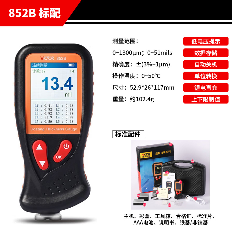 VICTOR852D是一款綜合鐵基體(FE)、非鐵基體(NFE)測量的高性...