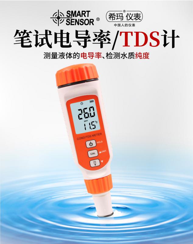 希瑪公司生產(chǎn)的便攜式筆試電導(dǎo)率/TDS計,產(chǎn)品精度高、工作穩(wěn)定、可靠、便于攜帶。外形設(shè)計新穎美觀,產(chǎn)品設(shè)計更具有專業(yè)性,它能測量溶液的PH值和顯示被測液體的溫度。