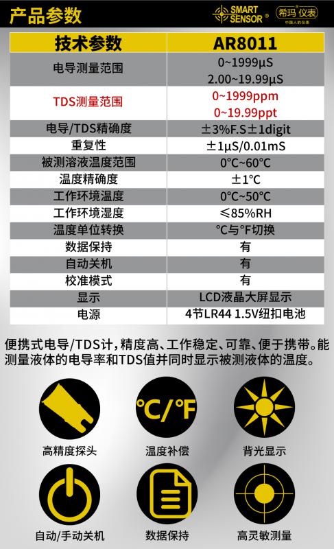 AR8011筆試電導(dǎo)率/TDS計產(chǎn)品價格: