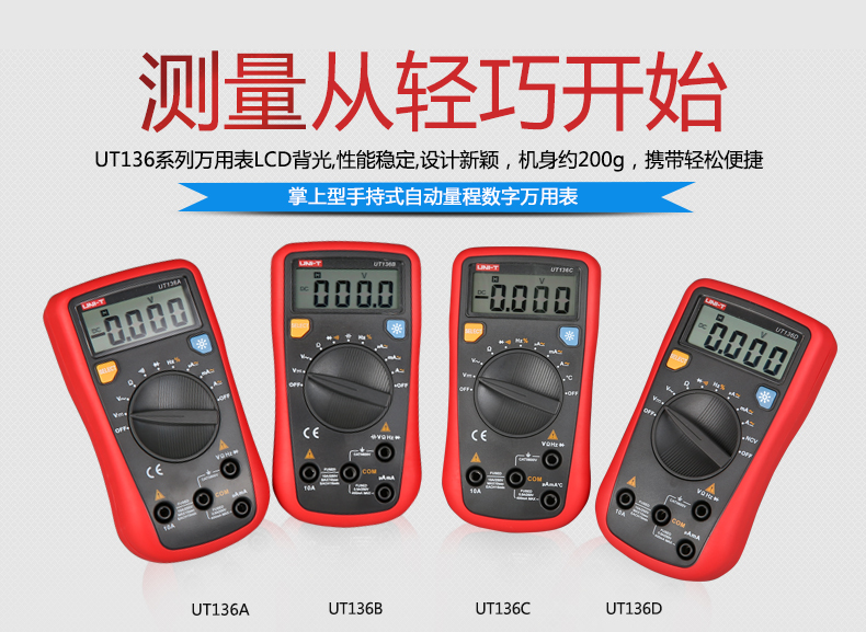 UT136系列數(shù)字萬用表是一種功能齊全,性能穩(wěn)定,功耗低,結構新潮,安全可靠的小型手持式自動量程數(shù)字萬用表。