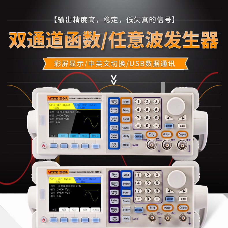 VC2003A雙通道函數(shù)/任意波形信號(hào)發(fā)生器采用了直接數(shù)字頻率合成技術(shù),能輸出精度高、穩(wěn)定、低失真的信號(hào)。