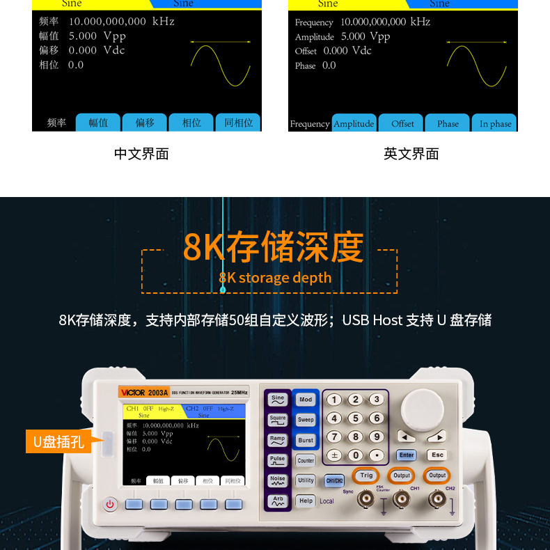 勝利VC2003A任意波形頻率頻計(jì)多功能臺(tái)式函數(shù)信號(hào)發(fā)生器產(chǎn)品價(jià)格: