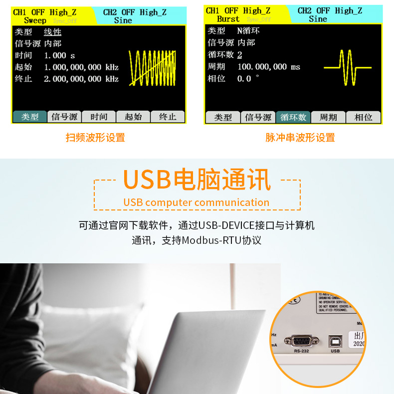 標(biāo)配RS232USBDevice接口,選配USB?Host及外部模擬調(diào)制接口;