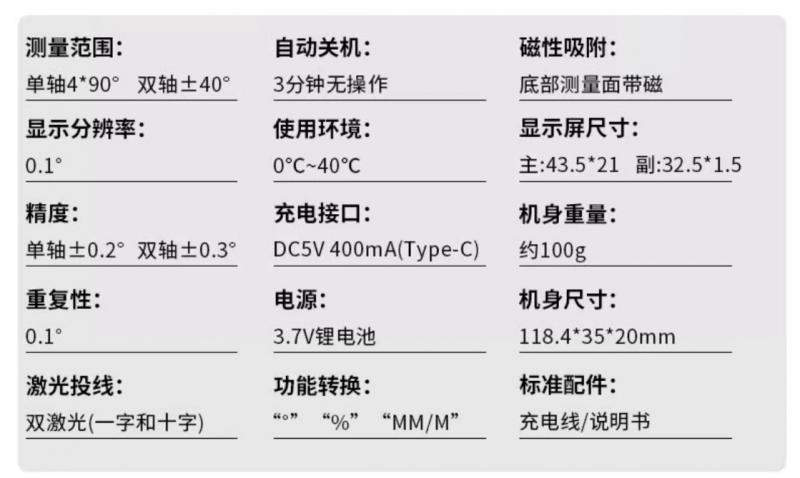 VICTOR 5010M是一款能實(shí)現(xiàn)實(shí)時角度測量及激光投線功能二合一的智能角度儀,采用高端進(jìn)口元件精密組裝,可達(dá)±0.2°高精度測量,智能與精準(zhǔn)兼并。鋁合金磨砂機(jī)身,呈現(xiàn)利落精工線條,經(jīng)久耐用;屏幕采用超寬雙面LED彩屏,測量秒速反應(yīng),數(shù)據(jù)實(shí)時顯示;整機(jī)輕至約100g,薄約20mm,搭配兩個舒適簡潔按鈕,一手輕松掌控,成就非凡操作體檢;內(nèi)置高容量鋰電池高效續(xù)航,搭配Type-C充電接口,消滅續(xù)航焦慮。集眾多優(yōu)點(diǎn)于一身,滿足廣泛的應(yīng)用領(lǐng)域。