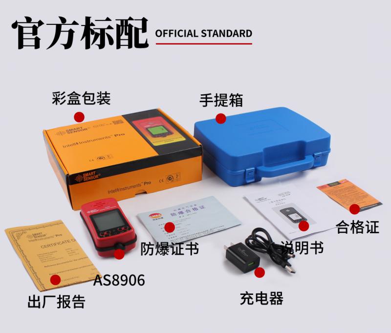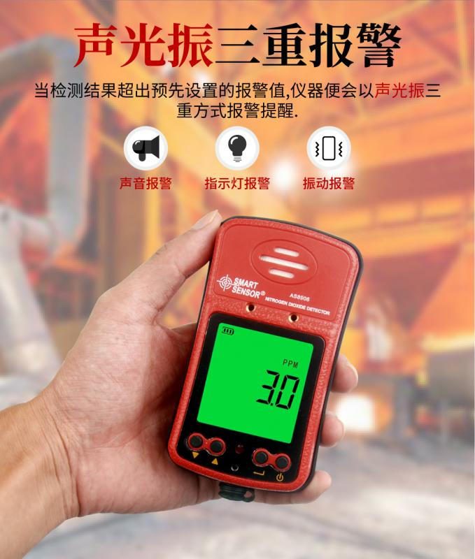 報警方式 聲、光、振三重報警,可以設(shè)置報警值,報警聲可達80分貝