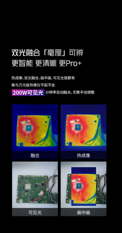 支持多種偽彩色可調(diào)節(jié)雙光融合:支持熱成像與可見(jiàn)光雙光融合