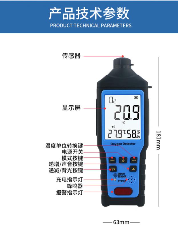 ?,擲T8100氧氣檢測(cè)儀手持式氧氣O2濃度含量氣體報(bào)警器測(cè)氧儀