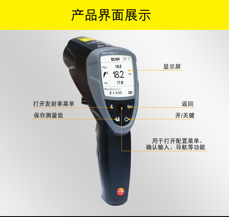 測(cè)量墻面等表面溫度和濕度、監(jiān)控空調(diào)和通風(fēng)系統(tǒng)、維護(hù)工業(yè)系統(tǒng),或者對(duì)工業(yè)產(chǎn)品進(jìn)行質(zhì)量控制:testo 835-H1紅外測(cè)溫儀適用于各種工業(yè)及商業(yè)場(chǎng)合應(yīng)用。