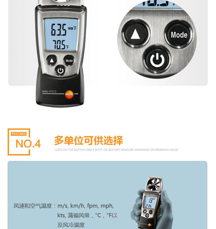 testo 410-1迷你葉輪風(fēng)速儀具備各種實(shí)用功能