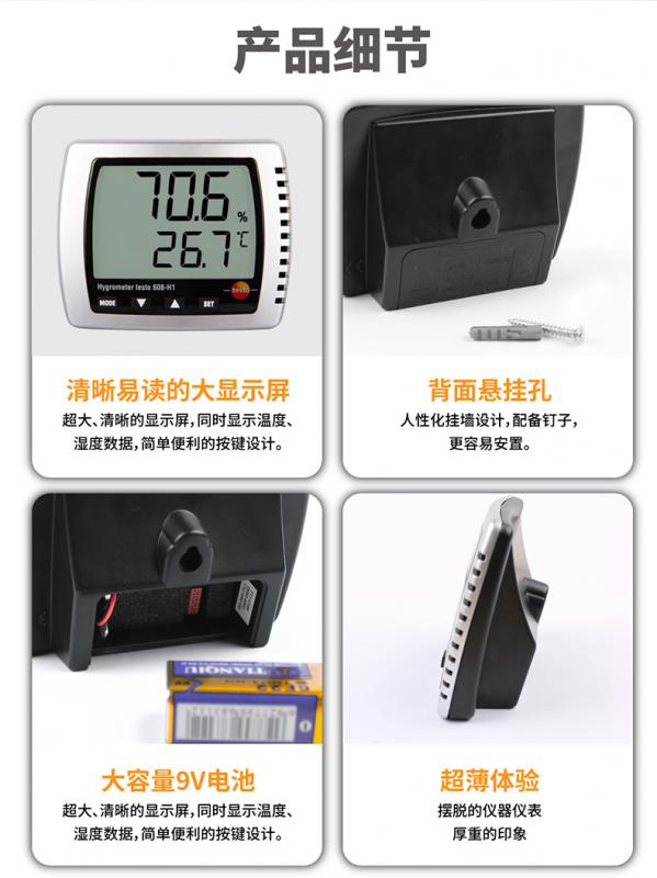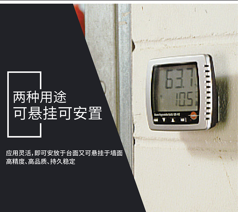 產(chǎn)品簡(jiǎn)介:德圖testo可掛墻式臺(tái)式溫濕度計(jì)內(nèi)置NTC溫度傳感器和長(zhǎng)期穩(wěn)定的濕度傳感器,可實(shí)時(shí)監(jiān)測(cè)食品的儲(chǔ)存環(huán)境和辦公室環(huán)境濕溫度,實(shí)現(xiàn)連續(xù)精確穩(wěn)定的溫濕度測(cè)量,儀器應(yīng)用靈活,即可安放于臺(tái)面又可懸掛于墻面。