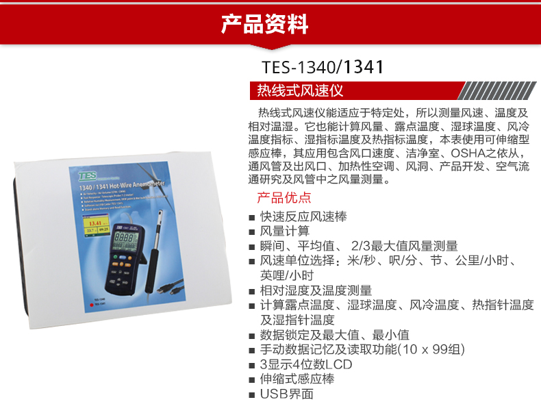 | 泰仕TES-1340熱線式風(fēng)速計 | |||