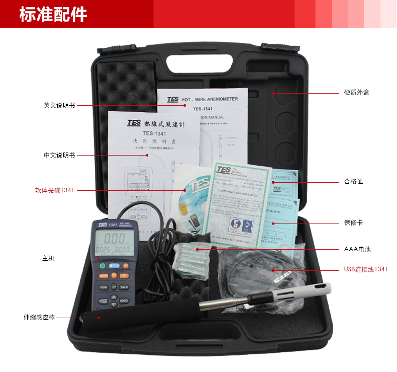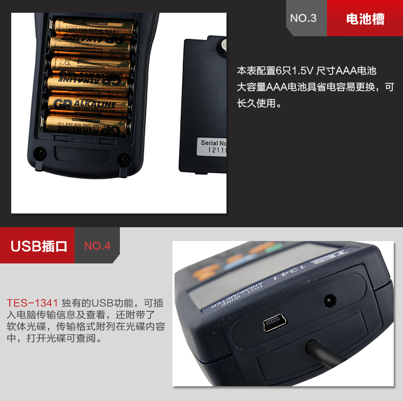| 附件: | 攜帶盒、說明書、電池、USB線(TES-1341)、光盤軟件(TES-1341) AC電源轉(zhuǎn)換器(TES-1341) | ||