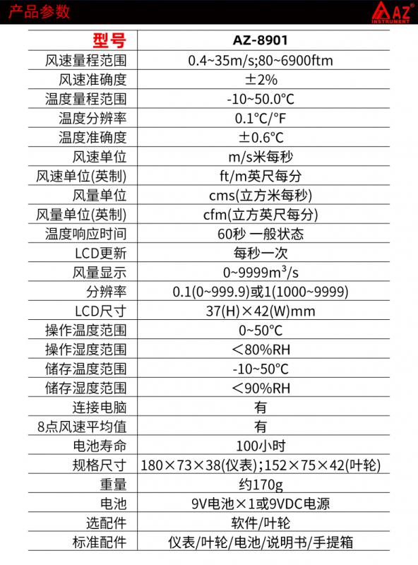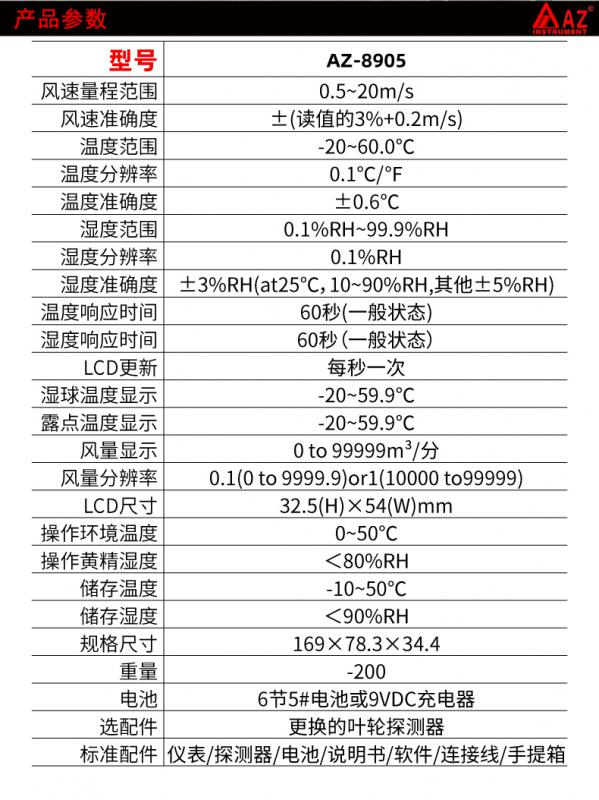 風(fēng)速測(cè)量范圍:1.1~20.0m/s 風(fēng)速精度:±4% 分辨率:0.1
