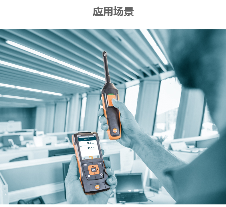直觀:用于在線測量且結(jié)構(gòu)清晰的測量菜單,并可同時確定室內(nèi)區(qū)域的相對濕度和空氣溫度