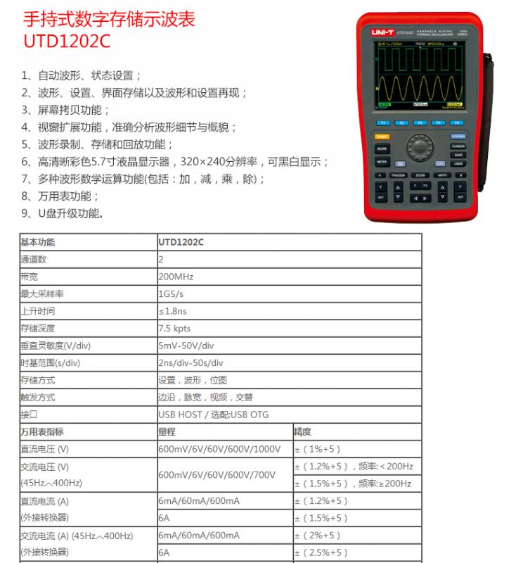 帶寬:200MHz,最大采樣率1GS/S,存儲深度:7.5kpts,垂直靈敏度:5mV-50V/div