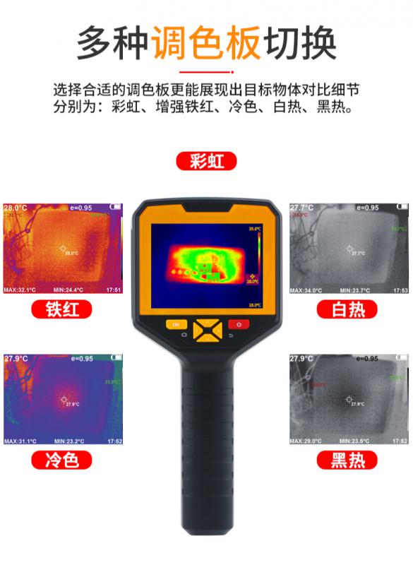 | 調(diào)色板 | 增強(qiáng)鐵紅/白熱/黑熱/鐵紅/彩虹/紅熱/冷藍(lán)? |