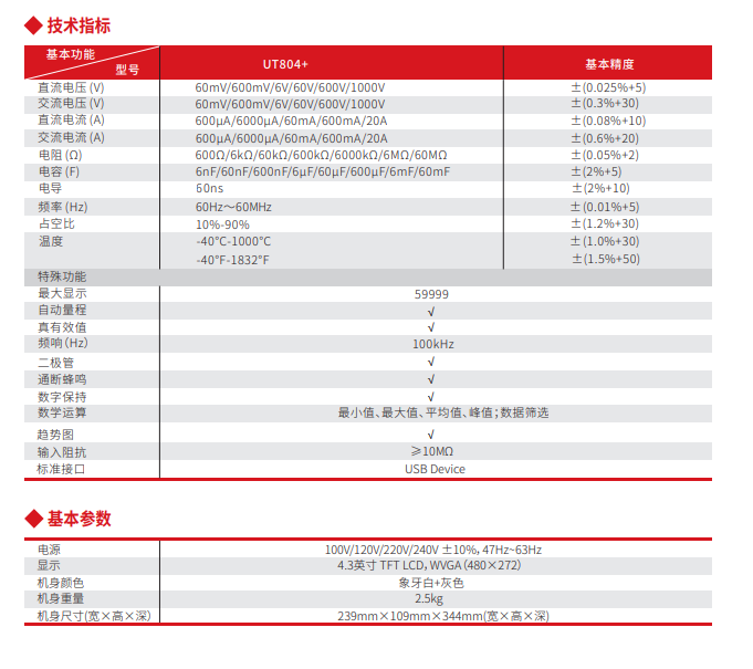 UT804+臺(tái)式數(shù)字萬用表,最大59999顯示,測量速率快,顯示分辨率高,滿足用戶多功能、高精度、自動(dòng)化的測量需求。