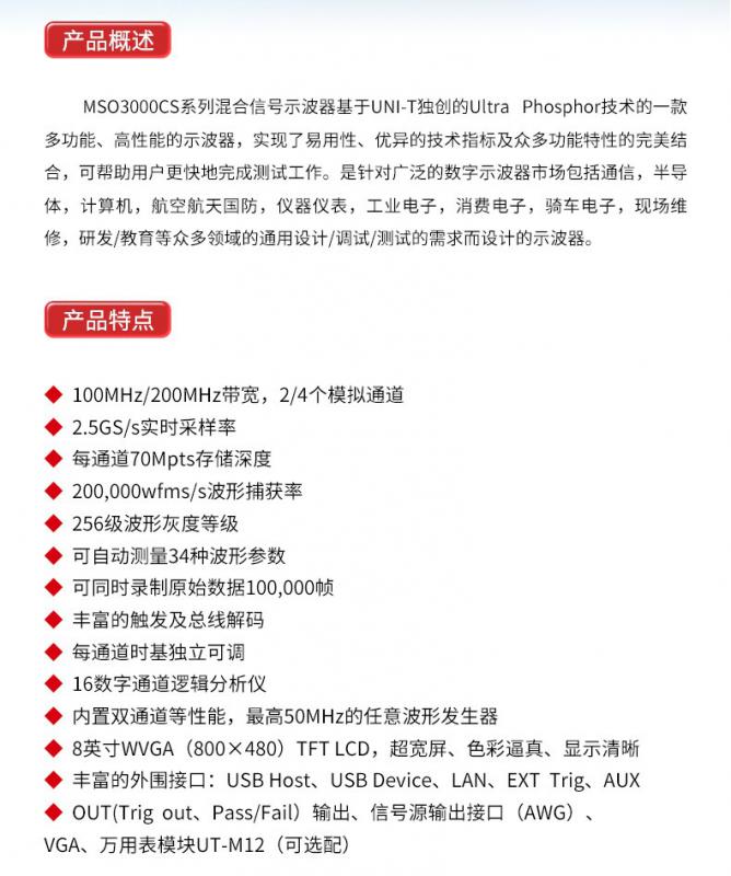 優(yōu)利德MSO3104CS混合數(shù)字熒光示波器100M四通道數(shù)字存儲示波器