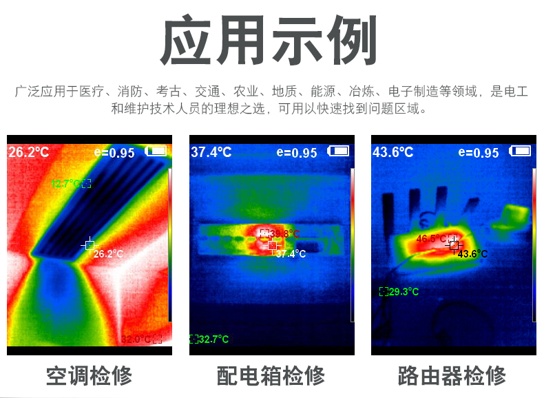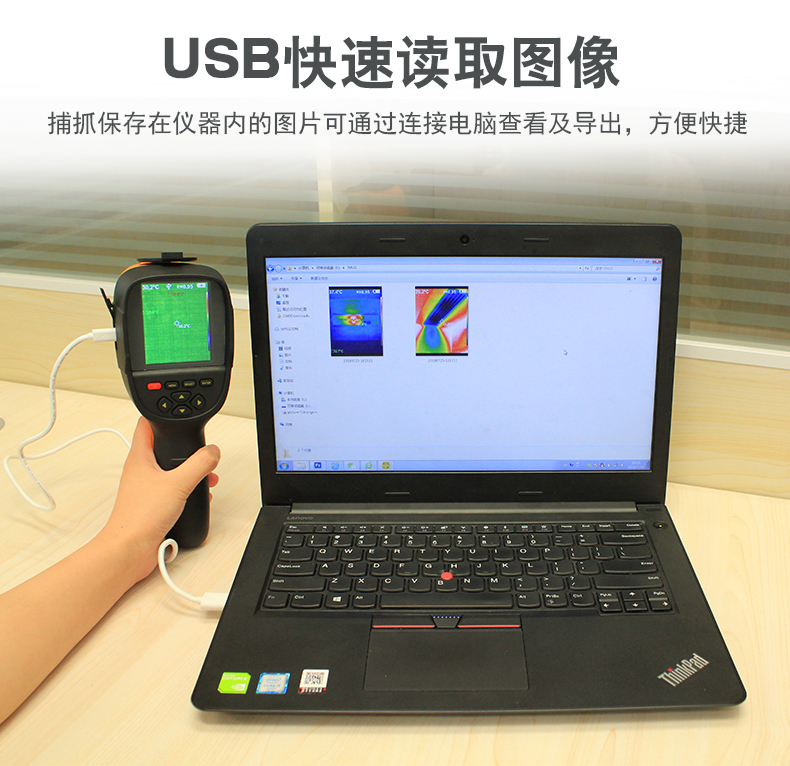 本產(chǎn)品是表面溫度測量和實時熱圖像相結(jié)合的紅外熱成像儀,傳統(tǒng)的紅外測溫儀需要逐一測量每個部件,而紅外熱成像儀則無需如此,從而節(jié)省了時間。潛在問題可清晰地顯示在彩色顯示屏上,而且通過中心點測量光標能快速準確地定位并測量目標物體的溫度。熱圖像可以保存到本設(shè)備中,通過USB讀取圖像或?qū)⑵浔4嬷岭娔X用于生成報告和打印。該產(chǎn)品體積小,易操作,功能強,是電力,電子制造,工業(yè)檢測等領(lǐng)域的理想之選